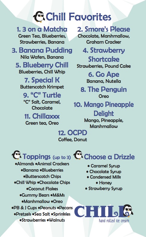 Chill was a new business that opened up in Ocean City, NJ and served hand rolled ice cream. They needed a variety of marketing materials for their new business which included a menu, car wraps and a logo for the doughnut portion of the business.
