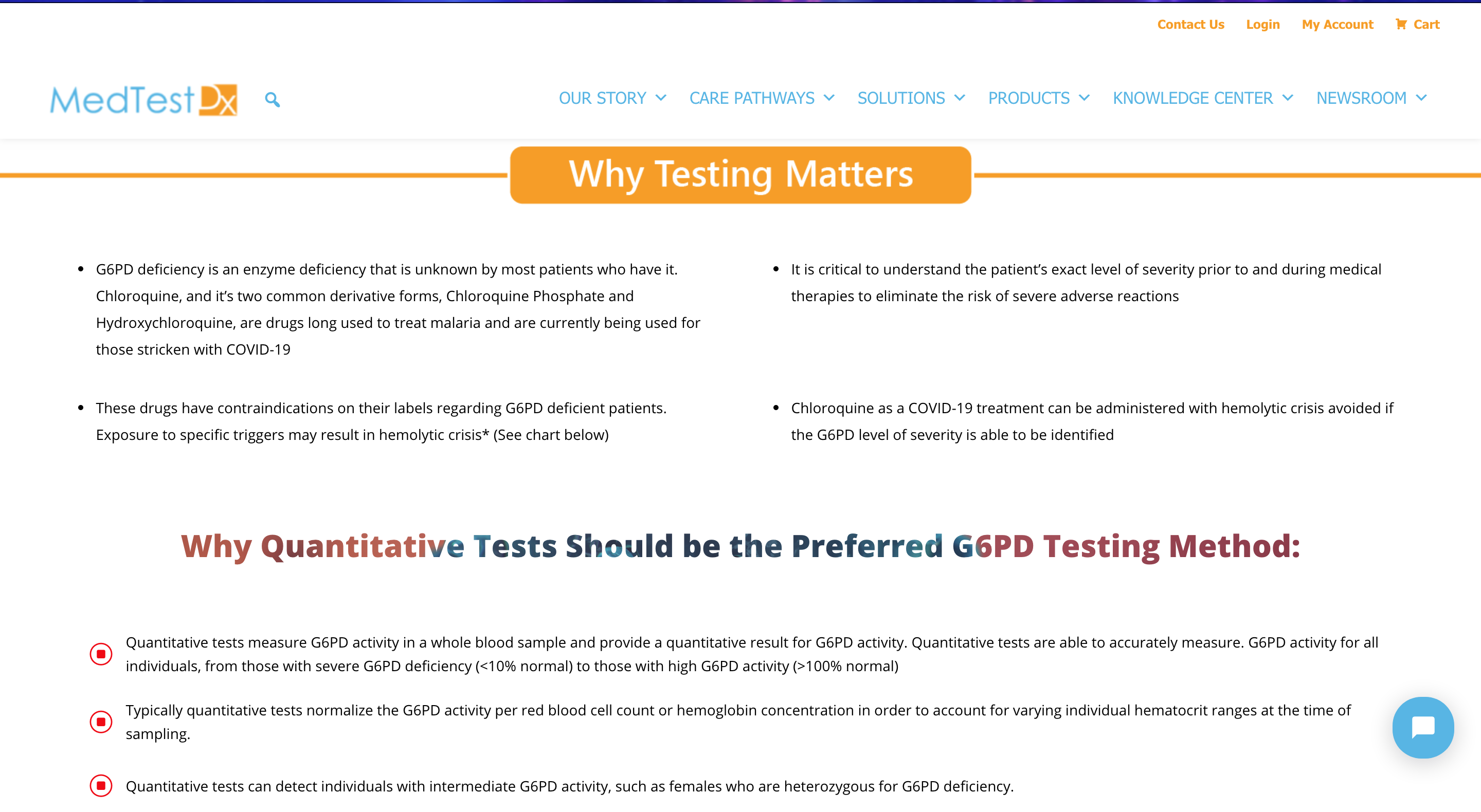 Below is a series of example pages from medtestdx.com. While at MedTest Dx